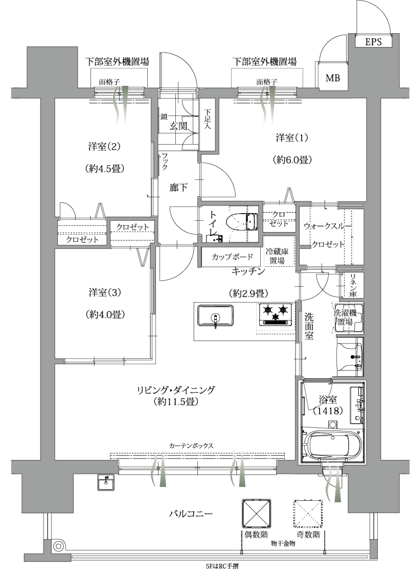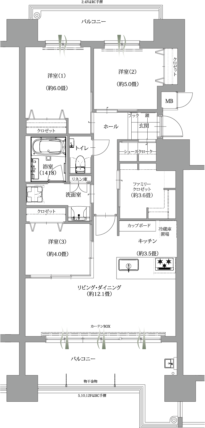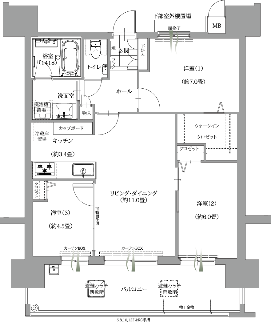 間取り参考 | エンクレストガーデン福岡「C5type 3LDK+WTC」