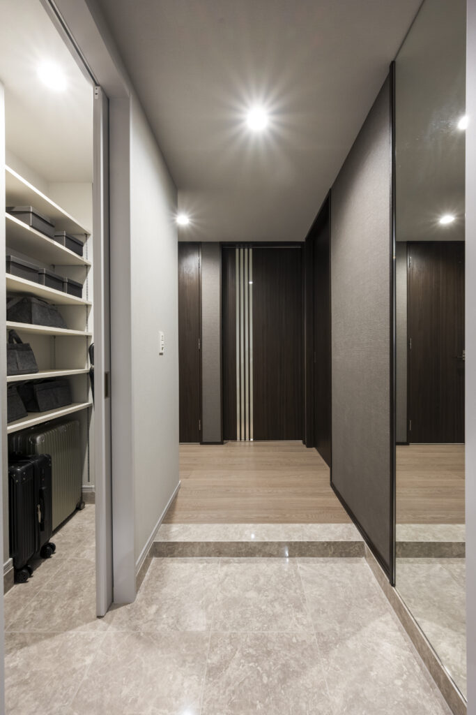 豊富な収納だけでなく、玄関をすっきりと美しく見せてくれる、洗練されたシューズクロークです。